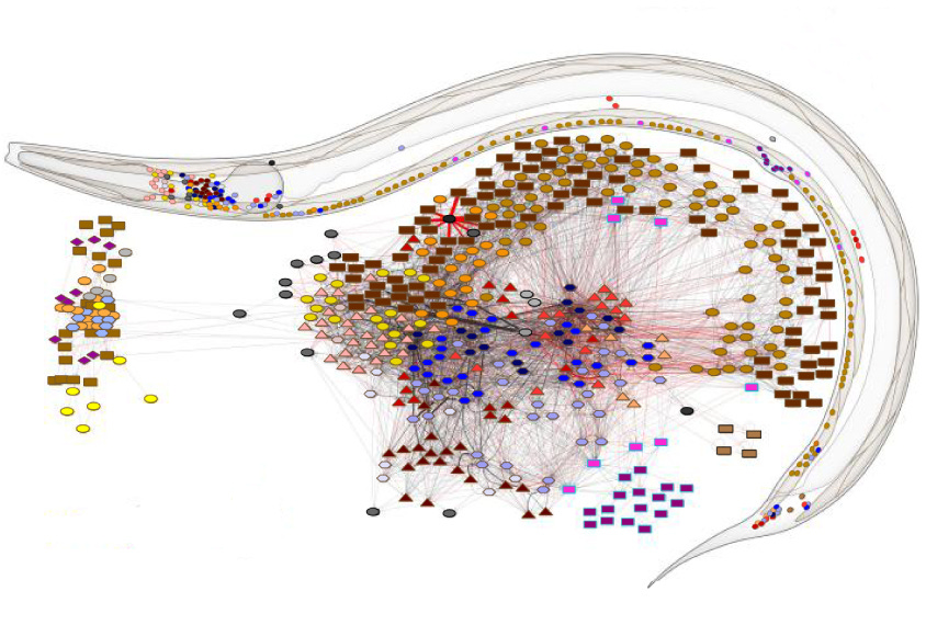There's a big development related to the above we have to talk about: connectomes. A connectome is a full "circuit diagram" of a brain, with every neuron and connection mapped. They certainly don't tell us everything about how a brain works, just the basic wiring, but they give clear constraints on what different parts of the brain are doing. In 1986 we got the first connectome of C. Elegans, a little worm with 302 neurons (more detail has been added to that connectome over time as we've learned more, for example, about the nature of the connections).
