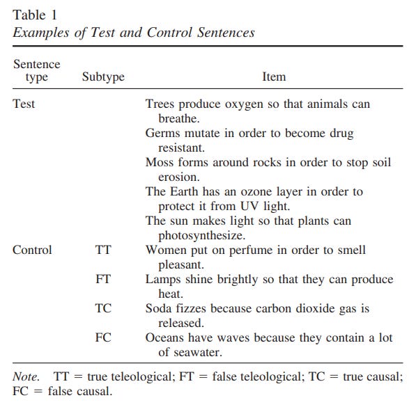 The authors conclude that teleological reasoning is a cognitive default. That is, even highly trained scientists continue to think in teleological terms about natural objects, but have learned to inhibit it. Much like the Stroop task, in which reading is faster or more automatic, the idea is teleological reasoning is faster or more automatic.